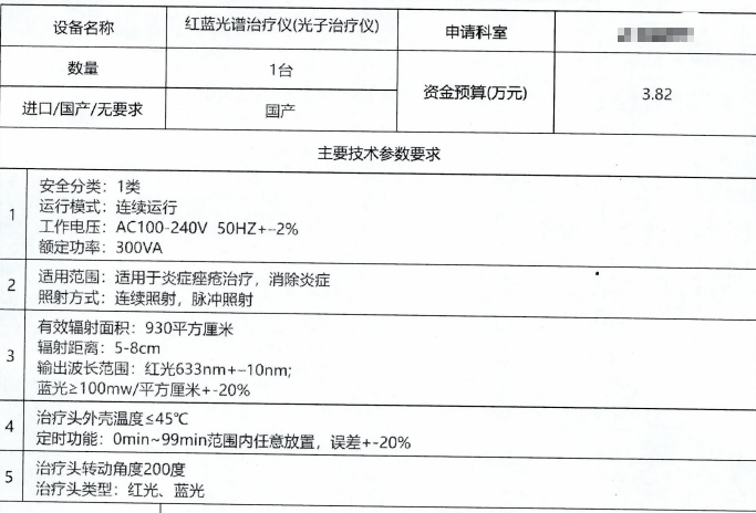 3 | 红蓝光谱治疗仪(光子治疗仪) | 1 | 台 | 38200 |